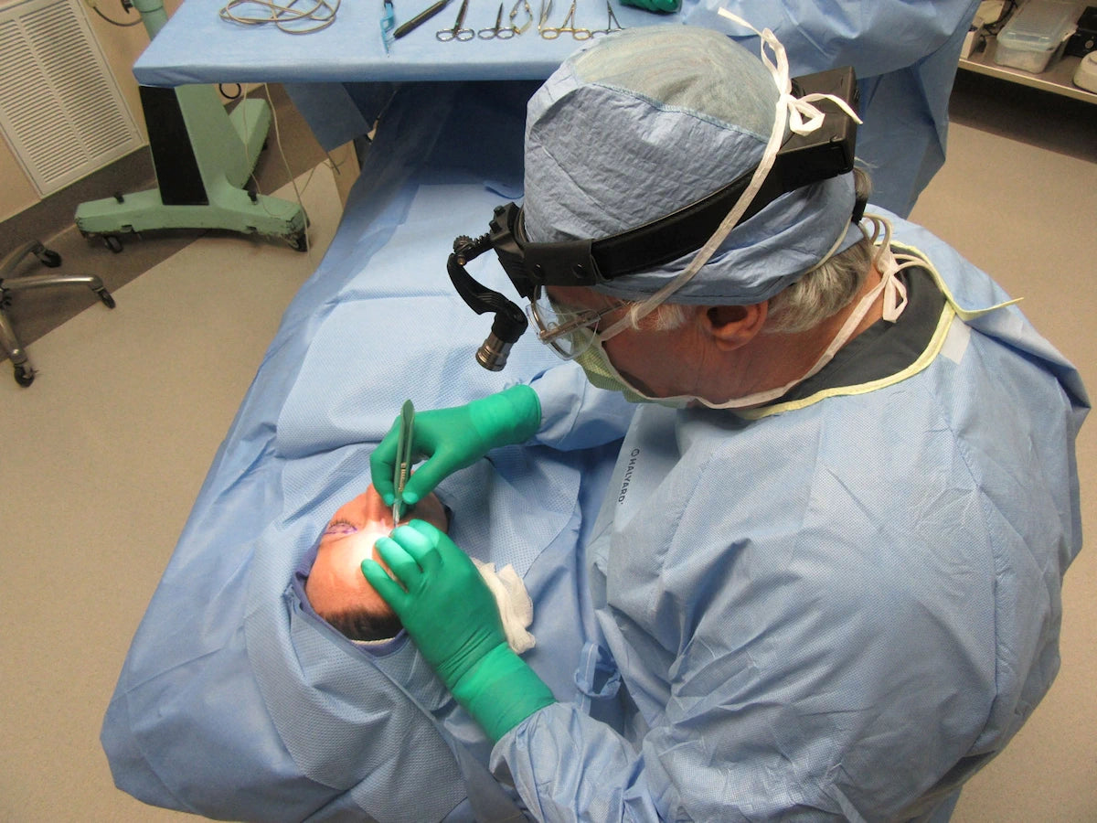 A woman one week after Blepharoplasty procedure.